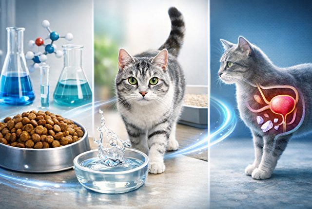 尿路結石の原因となるマグネシウムやカルシウムなどのミネラルバランスを調整し、結石形成を抑制します。愛猫の尿pHを適切に保つことで、ストルバイト結石やシュウ酸カルシウム結石のリスクを減らします。